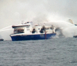 Strong winds swept over waters as a ferry fire was at flames and smoke. Although rescue help was readily available, the fire was made difficult to distinguish du ...