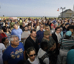 {Crowd gathered and watched doors close}