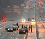 Drivers on a North Carolina interstate where led to a chain reaction crash on Sunday, March 13, 2016. Sources said that at least 100 vehicles were involved in the pile ...