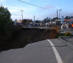 TWO HOLES SINK THE GROUND OF AN OREGAN COASTAL HIGHWAY
