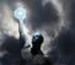 Man covered in gridwork holding ball of electricity