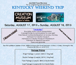 Join us for a great weekend bus trip to the Creation Museum and Newport Aquarium August 17-18, 2013.