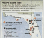 see pic ,Long before the Civil War, blacks found freedom in Spanish Florida. This map shows where they cluttered between 1690 and the 1850's.