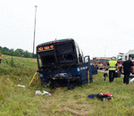 Nineteen people were injured by a driver of a stolen car as it plunged into Greyhound bus as it headed down the wrong way. News sources said the driver plowed into the Greyhound causing the f ...
