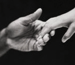 with hands embrace