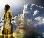 Above in the clouds are voices of virgin's cries as