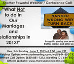 Our Next Webinar / Conference Call: “Why is Marriage considered Half of Your Faith? - What does that really mean for us in 2013?”
