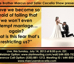 God willing, on this Sunday July 14, 2013 at 8:00 p.m. EST. please join your Relationship Servants, Brother Marcus and Sister Cecelia, as we address the topic of, “Have we become so afraid of failing that we won’t even attempt marriage…again? W ...