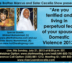 God willing, on this Sunday July 21, 2013 at 8:00 p.m. EST. please join your Relationship Servants, Brother Marcus and Sister Cecelia, as we address the topic of, “Are you terrified and living in perpetual fear of your spouse? Domestic Violence 201 ...