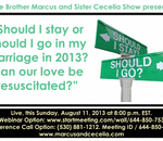 God willing, on this Sunday August 11, 2013 at 8:00 p.m. EST. please join your Relationship Servants, Brother Marcus and Sister Cecelia, as we address the topic of, “Should I stay or Should I go in my Marriage? Can our love be resuscitated?” Does ...