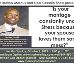God willing, on this Sunday October 6, 2013 at 8:00 p.m. EST. please join your Relationship Servants, Brother Marcus and Sister Cecelia, as we address the topic of, “Is your marriage constantly under Stress because your spouse just loves Mess?” I ...