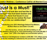 Peace and Love to the Family! With the help of Almighty God, we are continuing to strive to keep our word this year! This Sunday on January 20, 2013 at 8:00 p.m. EST. we are addressing the important issue of trust in marriages. What does trust look l ...