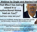 Peace and Love to the Family! God willing, this Sunday evening on January 27, 2013 at 8:00 p.m. EST. we are addressing the effects that being raised in a Dysfunctional family has on us. What effect does it have on marriages and future marriages and r ...
