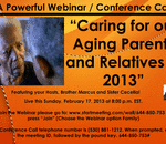 God willing, on this Sunday February 17, 2013 at 8:00 p.m. EST. please join Brother Marcus and Sister Cecelia as we have an open discussion on caring for our parents and relatives as they begin to age. What should we look out for? Should we put them ...