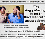 God willing, on this Sunday March 3, 2013 at 8:00 p.m. EST. please join Brother Marcus and Sister Cecelia as we examine and discuss Angry Marriages in 2013. Are we aware of how we are shutting our spouses down with all of our anger and other explosiv ...