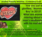 Our Next Webinar / Conference Call: “Are you just a glorified, ‘Momma’s Boy’ in 2013? What are women missing about a man’s relationship with his mother!”