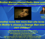 God willing on March 15, 2012 at 9:00 p.m. EST, The Brother Marcus Show will address the topic,"Why do some mothers choose a 'strange man' over their own daughters and sons? Does momma need love that badly that she would forsake her own children? Spe ...
