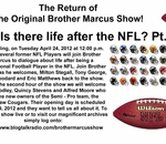 God willing, The Brother Marcus Show will officially return this Tuesday at 12:00 p.m. noon EST! We are going to interview some of our NFL greats! Please join us in the Chatrroom as we mix it up with N.F.L. players, Milton Stegall (Retired Cincinnati ...