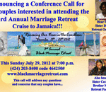 Peace and Love dear family. This is a reminder that we have a Conference Call for everyone interested in attending the 2012 Marriage Retreat – Cruise to Jamaica!