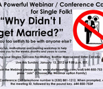 With the help and permission of Almighty God, National Marriage Retreat Facilitators, Brother Marcus and Sister Cecelia, will address Single Folk with another powerful workshop, "Why Didn't I get Married? - Are you too selfish to be with anybody else ...