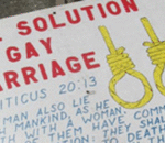 At a rally on the radical right-wing National Organization for Marriage's summer tour, the Courage Campaign's "NOM Tour Tracker" caught one attendee holding this sign.Yes, those are two nooses. It's sickening – but we're seeing even more of this ty ...