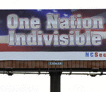 The billboard features an American flag background and quotes the original phrase from the Pledge of Allegiance, before "under God" was inserted after "one nation," in 1954.