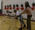 Caleb Roach, 6, was injured in a car crash nine months ago An elementary school student who began the school year in a wheelchair shocked his classmates by ending it on his feet.