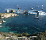 The luxury cruise ship Costa Concordia leans on its side after running aground in the tiny Tuscan island of Giglio, Italy, Saturday, Jan. 14, 2012. The luxury cruise ship ran aground off the coast of Tuscany, sending water pouring in through a 160-fo ...