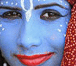 A girl dressed as Krishna poses at the Janmashtamil Hindu Festival in Watford, England. The two day festival celebrates the birth of Krishna , in what is believed to be the largest Hindu festival gathering outside of India.