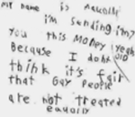 "My name is Malcolm. I'm 7 years old. I'm sending you this money because I don't think it's fair that gay people are not treated equally." That's the note we received recently along with a donation of $70.