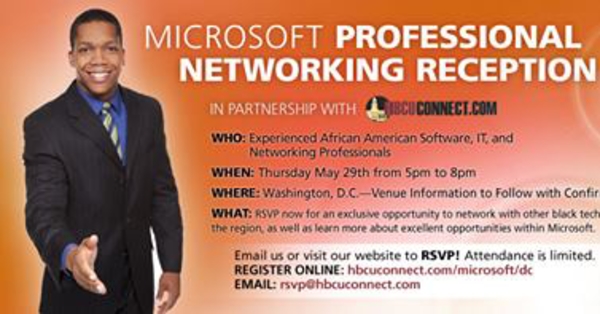 In partnership with Microsoft Cloud & Enterprise Business, Microsoft IT, and Global Foundations Services, HBCU CONNECT is offering black technical professionals the opportunity to meet with representatives from Microsoft to learn more about career opportunities, network with their peers, as well as open up one on one discussions with Microsoft team members that could lead to future employment. HBCU CONNECT has executed on events for Microsoft’s recruitment efforts at the National Society of Engineers conference in 2013, and recently at a private VIP event for Black HR professionals in the D.C, Maryland, and Virginia region. The proposed event for technical professionals will target software engineers, network engineers, Program Managers and experienced IT professionals in the DMV region. The decision to host the event in the D.C. area was based largely on the success of HBCU CONNECT’s most recent event with Microsoft in Alexandria, Virginia, as well as a large population of black technical professionals in HBCU CONNECT’s own member database. “We expect to see 50 to 65 professionals in attendance that will be looking to land interviews with Microsoft leadership, as well as learn more about what life at Microsoft is like as an African American” said Will Moss, CEO of HBCUConnect.com. “In each of our events we set up time for Microsoft employees to give a brief presentation about interesting work they are involved in, as well as “a day in the life” from an African American perspective, working for Microsoft, such that attendees can relate.”