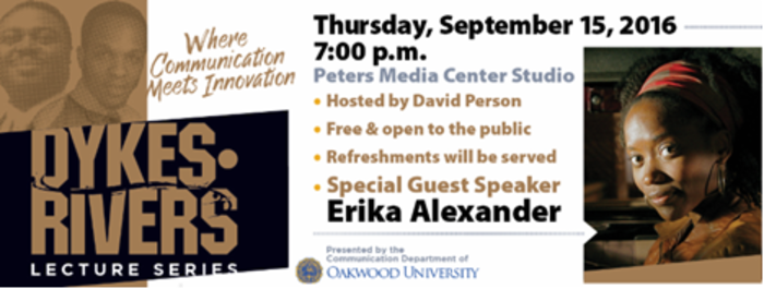 Oakwood University's Department of Communication is schedule to host award-winning actress Erika Alexander for the Dykes-Rivers Lecture Series on September 15 at 7:00 p.m., in the Peters Media Center Studio. The event is free to the public.