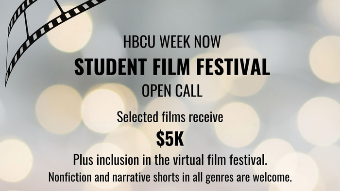 The HBCU Week NOW Student Film Festival, a celebration of creativity, innovation and storytelling by the next generation of filmmakers from HBCUs, seeks submissions of completed films in all genres, with a special focus on stories reflecting Black experiences, culture and history. Ten short films of up to 30 minutes will be selected, with each filmmaking team receiving $5,000. Submissions are due by May 7, at 11:59 p.m. Eastern Daylight Time (EDT). Find the submission link at: https://bit.ly/HBCUWNSFFOpenCall.