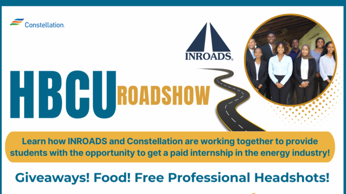OPEN All Students In The DMV (D.C., Maryland, Virginia, and beyond) Area – Don’t Miss This! Join us for the HBCU Roadshow powered by INROADS & Constellation on October 15, 2025, 3-7 PM at Howard University in Washington, DC in the Armour J. Blackburn University Center.