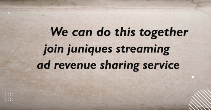 JUNIQUES OFFERS SHARE THE REVENUE AD STREAMING SERVICE FOR SMALL BUSINESS (441 hits)