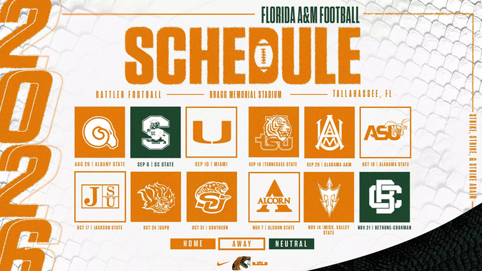 The Rattlers will open the season at home on Aug. 29 against Albany State in Tallahassee, setting the tone for a schedule that features nine games in the state of Florida, including two of the most storied events in Black college football.